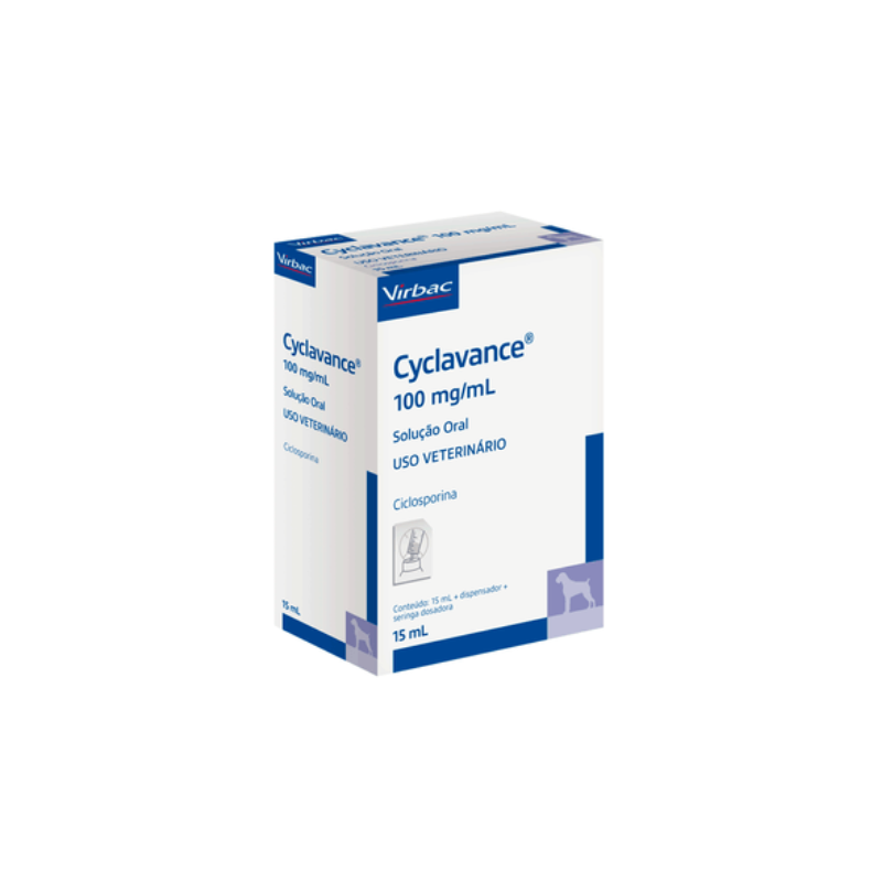 Cyclavance 100mg O Cyclavance 100mg/ml é um medicamento de administração oral indicado para o tratamento de sintomas relacionados à dermatite atópica canina. Seu uso é recomendado para cachorros a partir dos 6 meses de vida. Cyclavance 100mg: para que serve? O Cyclavance 100mg/ml é um medicamento dermatológico que serve como tratamento coadjuvante para dermatite atópica em cães. A solução atua combatendo sintomas como prurido, eritema e outras manifestações da doença.