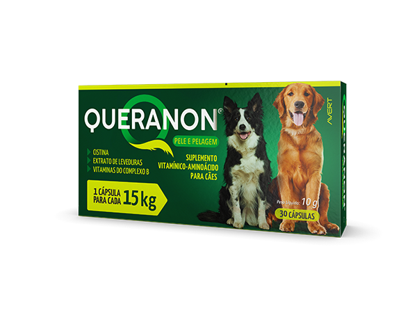 Queranon® é um suplemento vitamínico-aminoácido, indicado para cães que necessitem do aporte desses nutrientes.