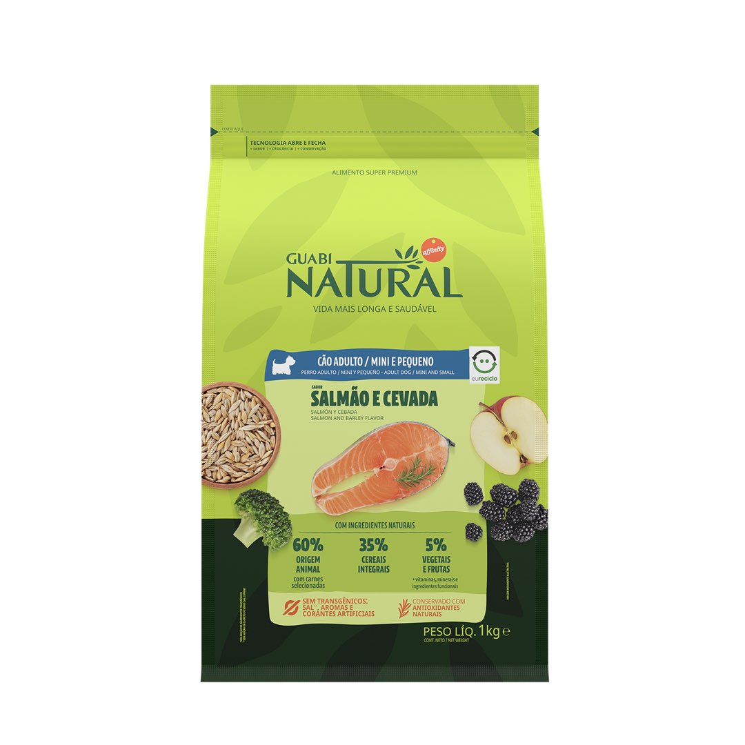 RAÇÃO GUABI NATURAL CÃO ADULTO MINI E PEQUENO SALMÃO E CEVADA