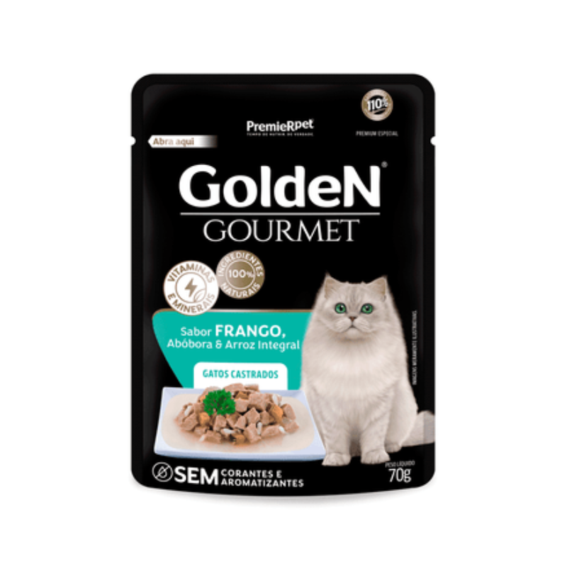 RAÇÃO ÚMIDA SACHÊ GOLDEN GOURMET GATOS CASTRADOS FRANGO 70g