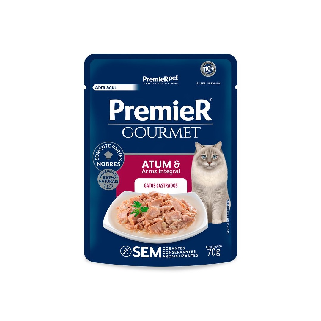 RAÇÃO ÚMIDA SACHÊ PREMIER GOURMET GATOS CASTRADOS ADULTOS ATUM 70g
